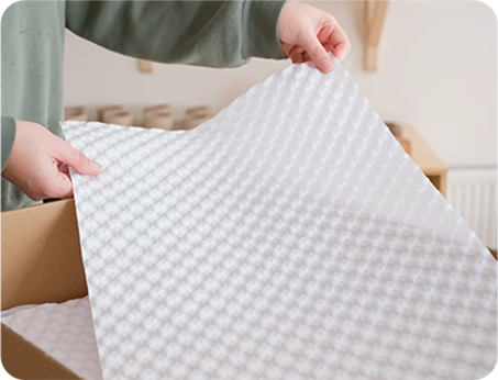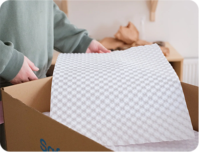 SafePak, baloncuklu yapısıyla ürünlerinizi hafif ama güçlü bir koruma altına alır. Dayanıklı yapısı sayesinde taşıma ve depolama sırasında maksimum güvenlik sağlar. %100 geri dönüştürülebilir kağıttan üretilen çevreci tasarımıyla hem işletmenize hem de doğaya değer katar.